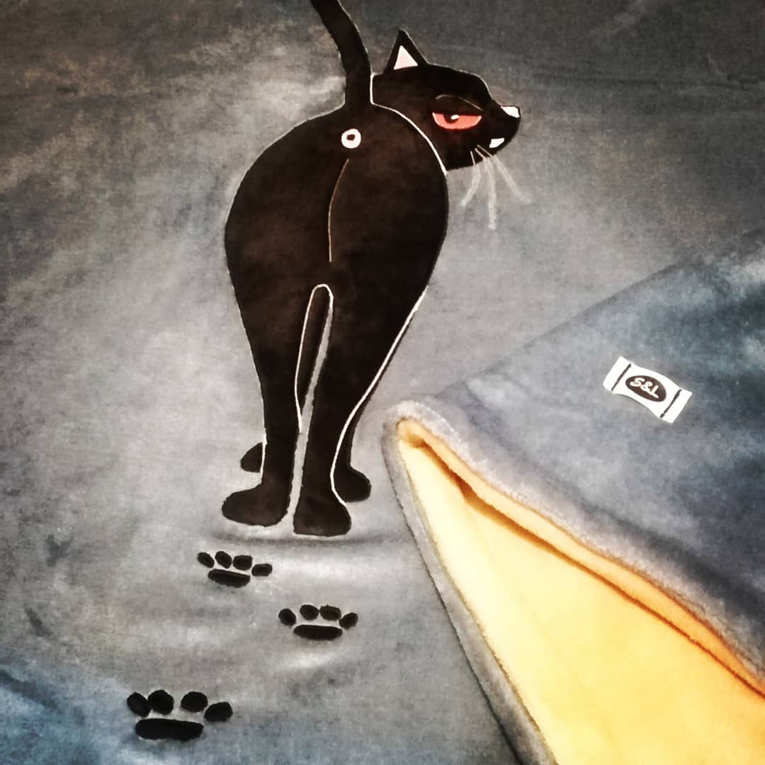 Avec ce froid, quoi de mieux qu'un grand plaid doublé bicolore, personnalisé chat, qui suit votre humeur du jour ?