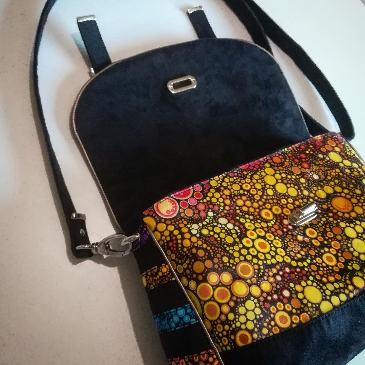 Né d’un coup de foudre entre un tissu Effervescence Rainbows de #robertkaufman et du modèle Palerme de #janeemilie , cette merveille ne quittera pas l’atelier. Impossible de s’en séparer 😍 De nombreuses poches, un rabat pour celles qui oublient systématiquement de fermer leur sac, et beaucoup de couleurs pour faire le plein de vitamines en attendant l’été, un vrai coup de foudre! Et si on créait le votre? 😎 #madeinfrance #madeindrome #faitmain #handmade #couture #coutureaddict #instacouture #sac #sacamain #seldesign